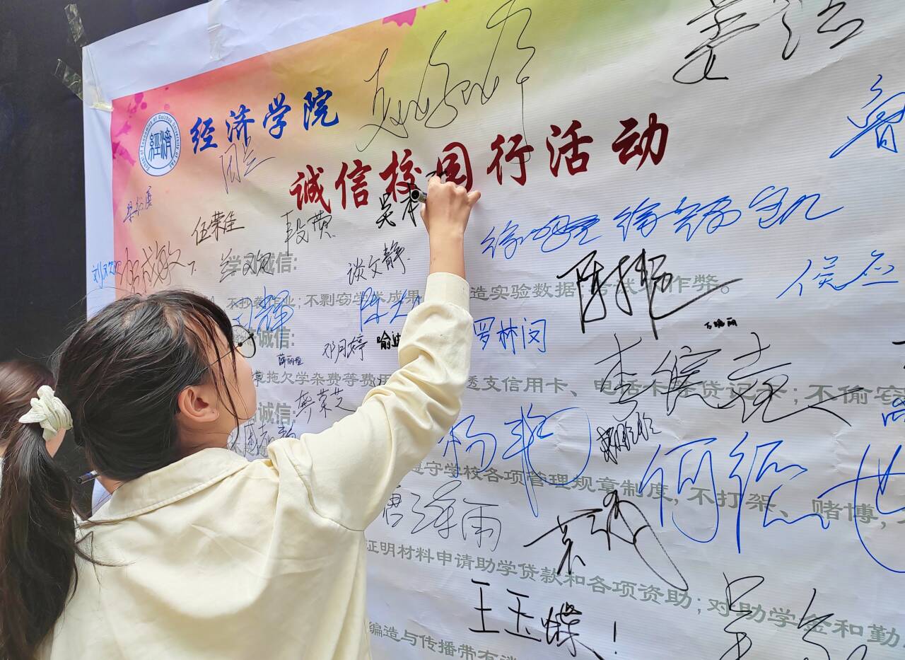 活动现场,“诚信校园行”主题区域,同学们郑重其事地在“以诚待人,以信立身”签名墙上签下自己的名字,表达了对诚信的承诺和坚守,学生们表示,通过参加这样仪式感很强的活动,更加深刻地认识到诚信的重要性,愿意在今后的学习生活中恪守诚信原则,也希望签名墙成为老师学生们共同守护诚信的见证。