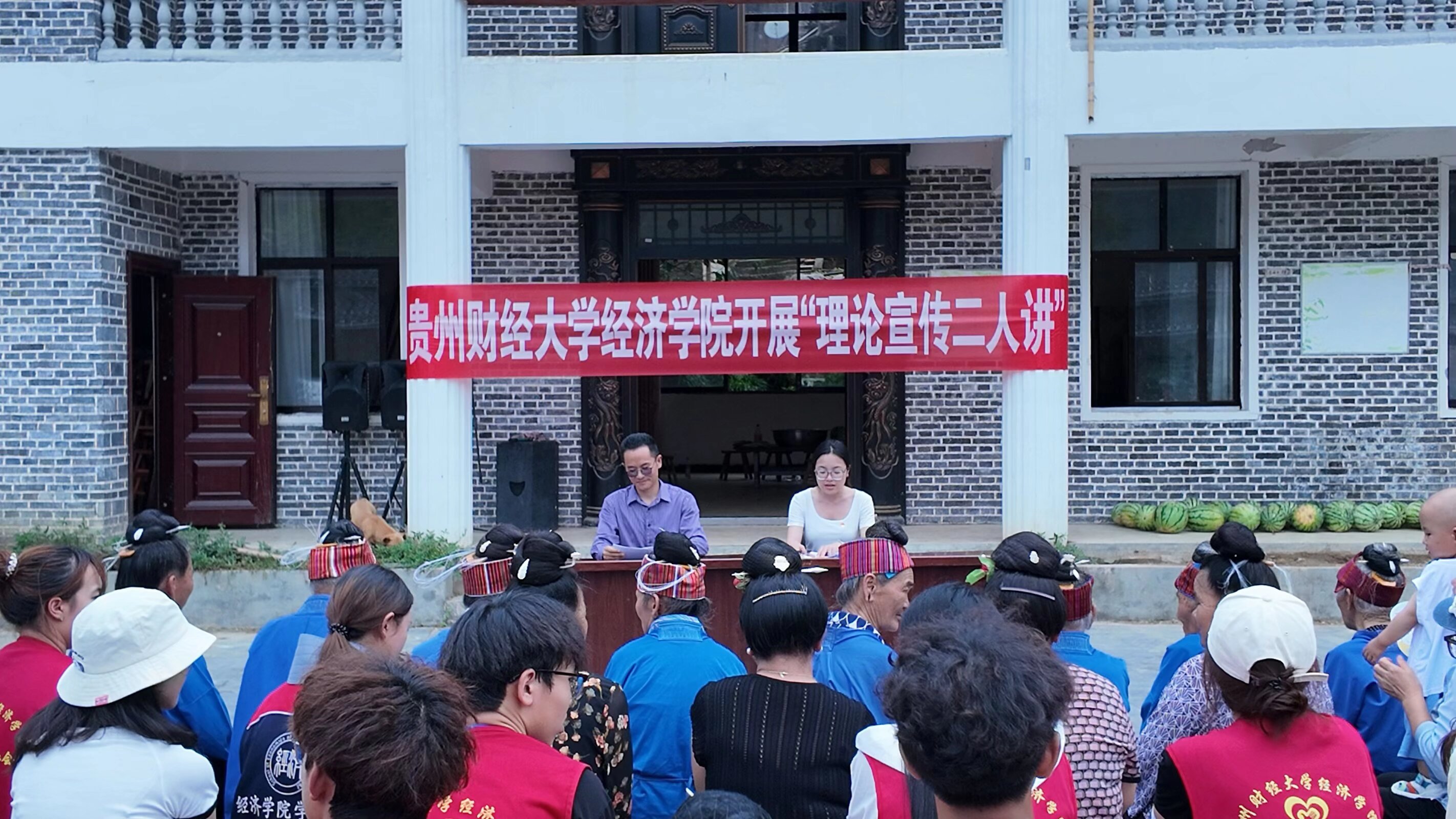 驻台江县平兆村第一书记梁任敏老师与学院研一支部学生党员罗钰琳同学,聚焦“从乡村变化看政策力量”,在村巴拉河村民族团结广场开展了一场“理论宣传二人讲”宣讲活动。活动搭建起理论与群众沟通的桥梁,既让村民汲取理论养分,也助力学院实践育人,以理论宣讲赋能乡村发展,实现高校知识服务社会与基层理论学习双提升,为乡村振兴注入思想动力。