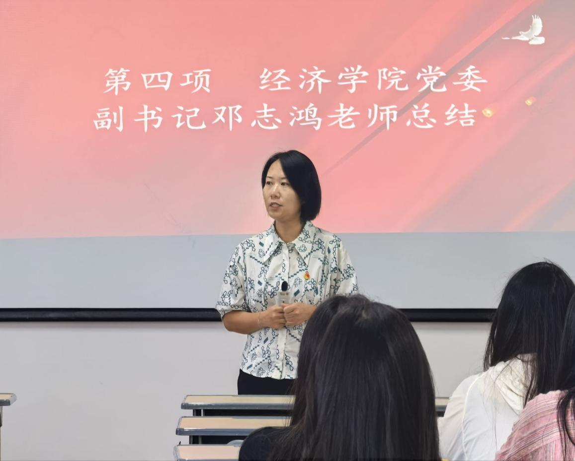 邓志鸿老师代表学院向新团员表示祝贺,并提出四点希望:一要坚定理想信念;二要加强学习实践;三要锤炼品德修养;四要发挥模范作用。她勉励大家争做有理想、敢担当、能吃苦、肯奋斗的新时代青年,为中华民族伟大复兴贡献青春力量。