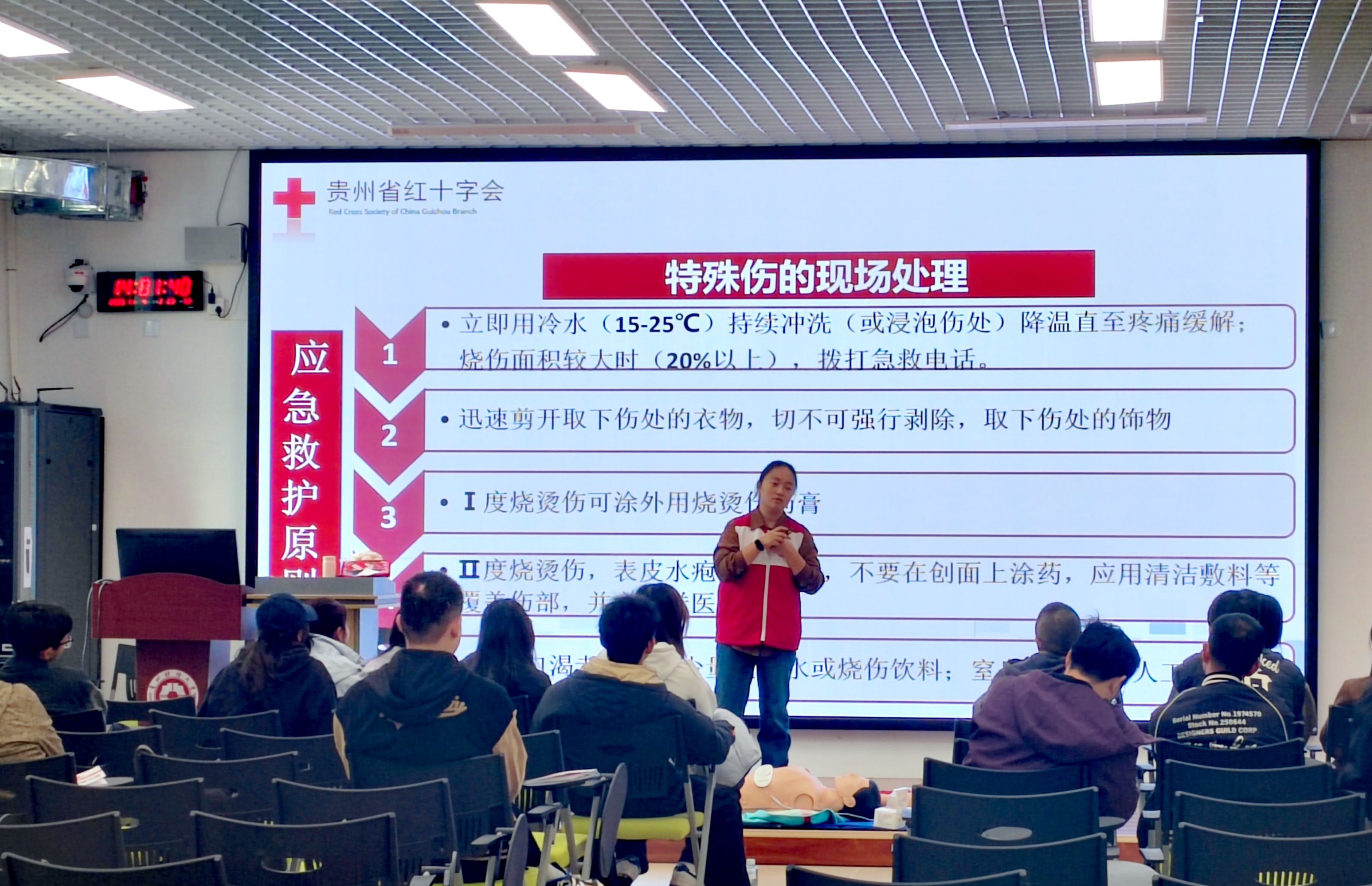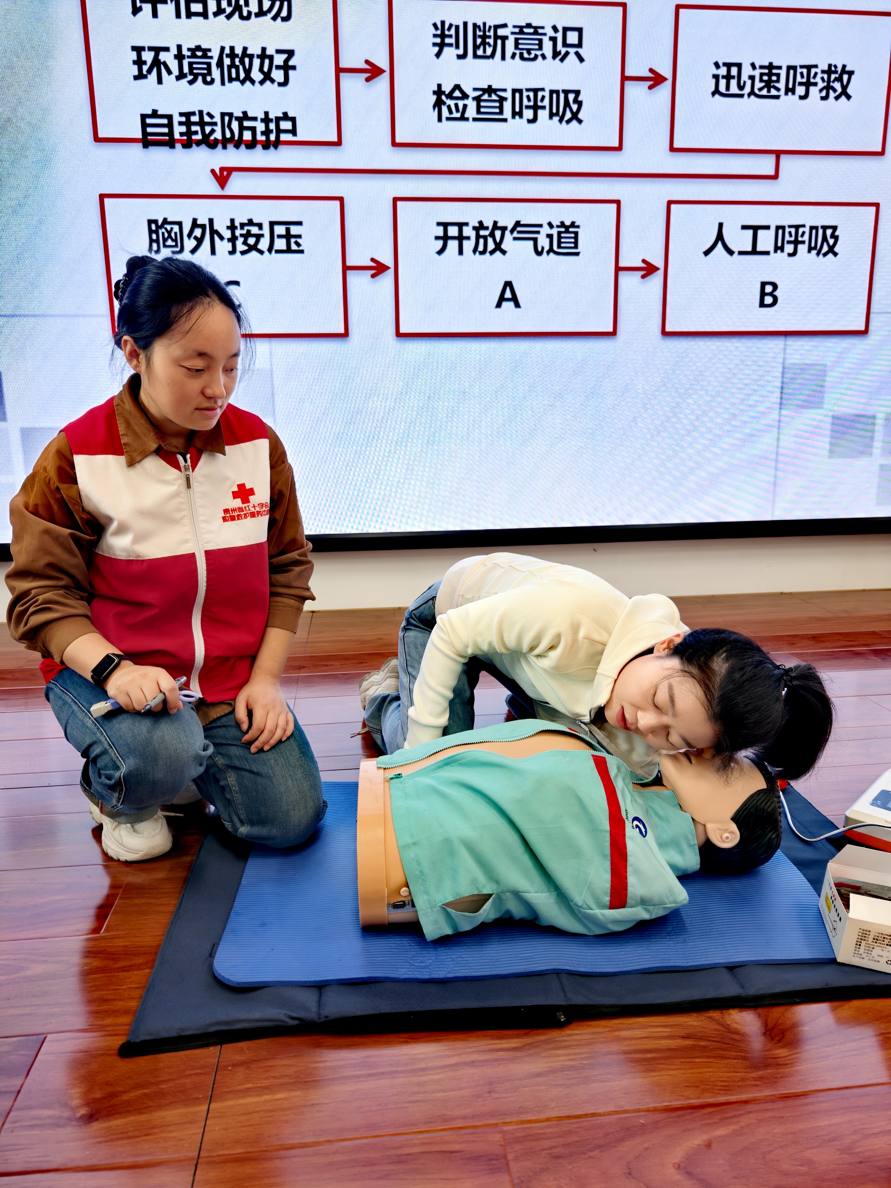 团委、大学生校园危机事件预警应对工作室邀请贵州省红十字会应急救护服务中心,在学院“一站式”社区为学院学工团队和学生骨干组织开展了一场专业系统的急救员培训活动。