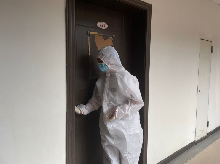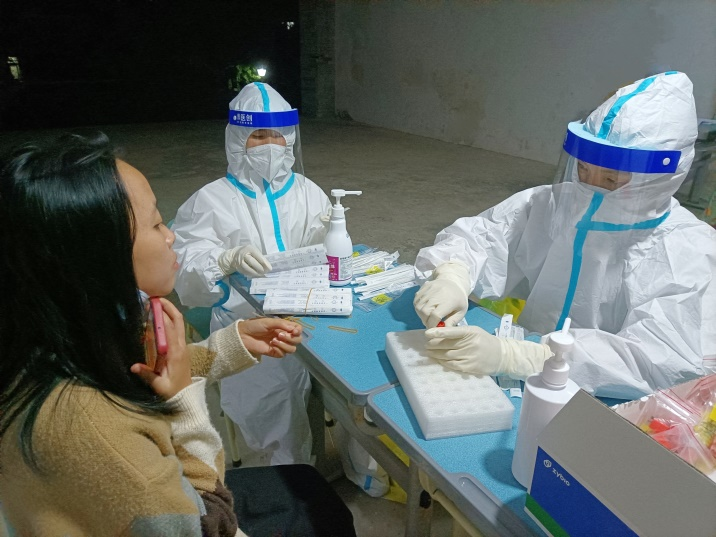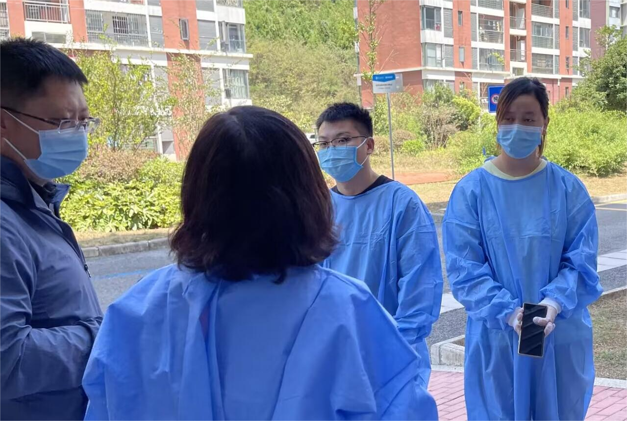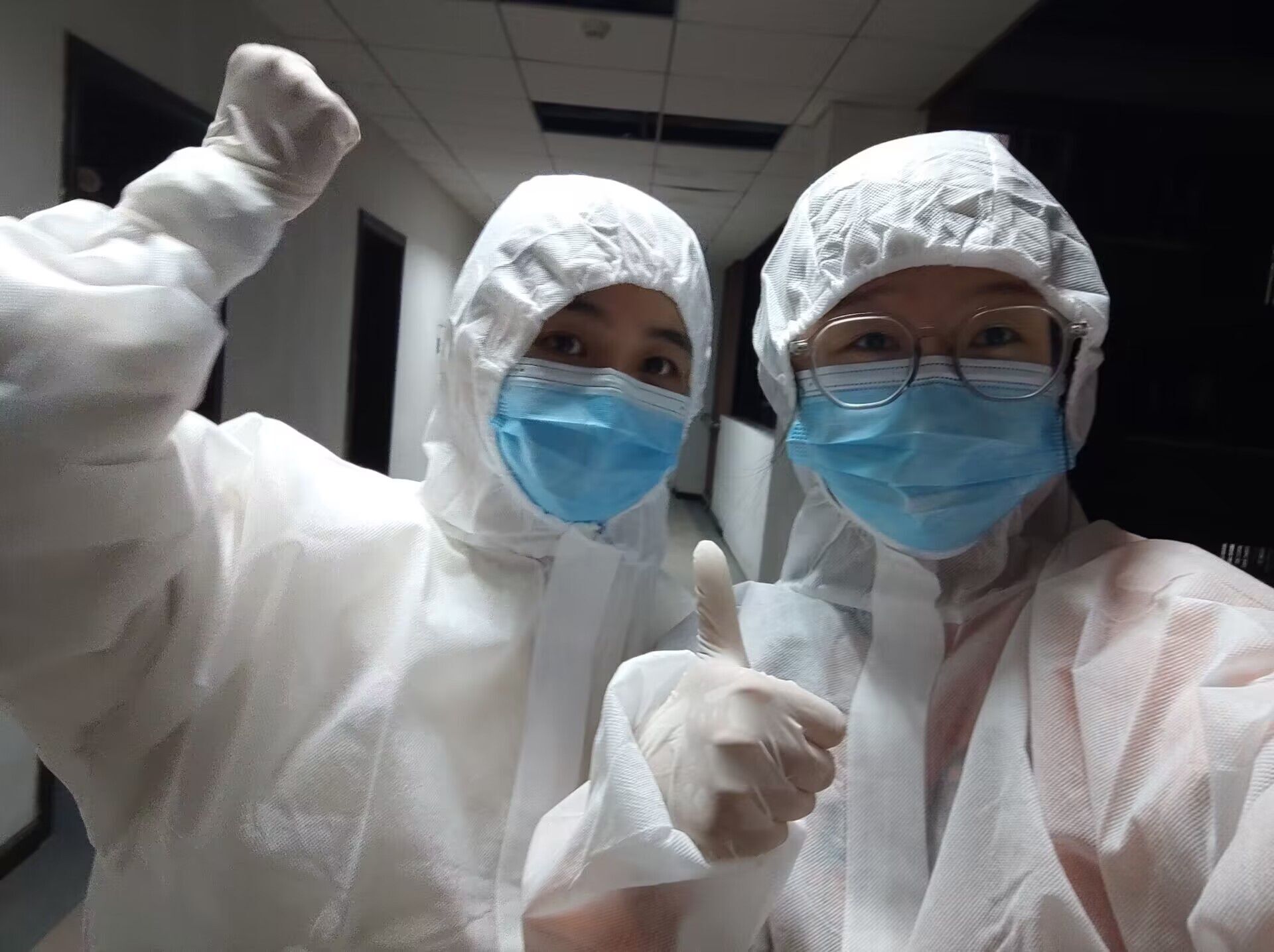 学生党建中心主任、中共预备党员夏现敏同志早上六点到达检测点,穿好防护服开始一天的工作。不论是雾气爬满护目镜,还是汗水打湿防护服,没有一句抱怨:“我希望在这段日子里发出微弱的光,微小但释放着自己的光芒,每个人的微光交织在一起才能成就灿烂的星河”。