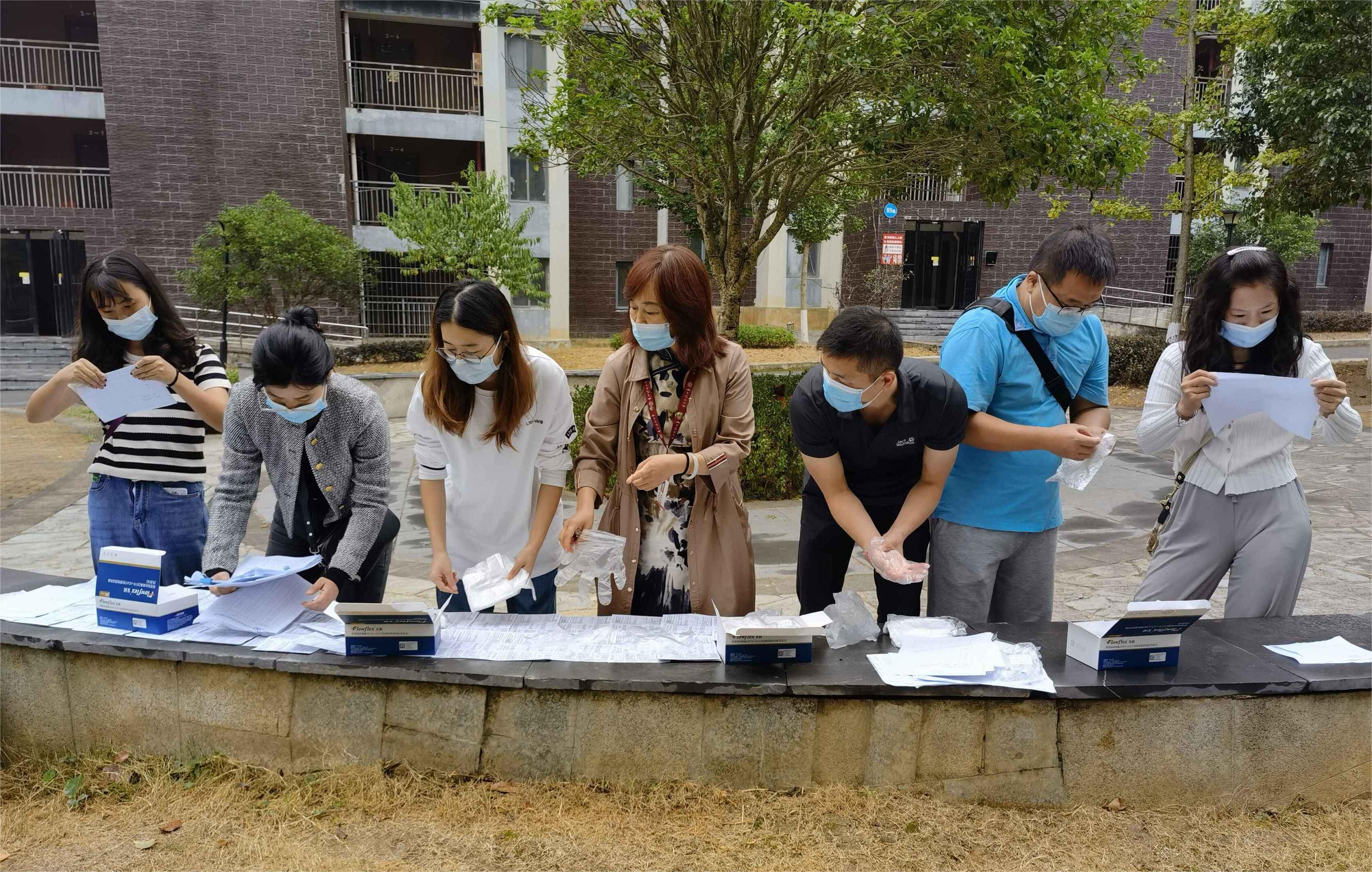 邓志鸿 报道|摄影 邓志鸿)在每个宿舍楼下、食堂楼层、教学楼前有这样一群人,在疫情防控最艰辛的时刻他们义无反顾的披上了志愿者的“铠甲”大白服,核对数据、整理检测物资,有的是佩戴红袖标的维护食堂、教学楼的秩序员。他们可能是我们的老师,也可能是我们的学生。我们每次被喊到核酸、抗原,是学校凌晨的部署,也是志愿者清晨6点早起的准备。