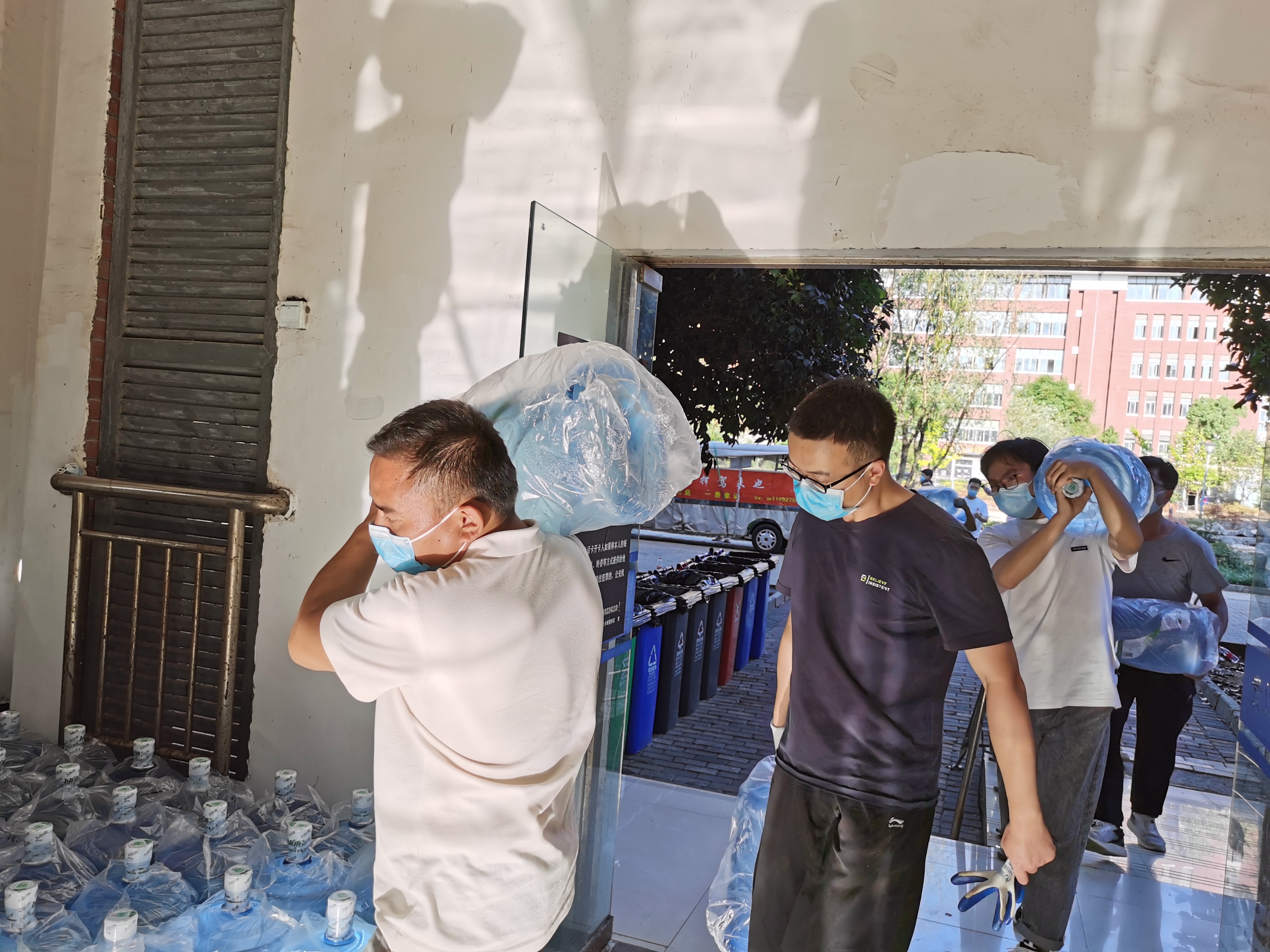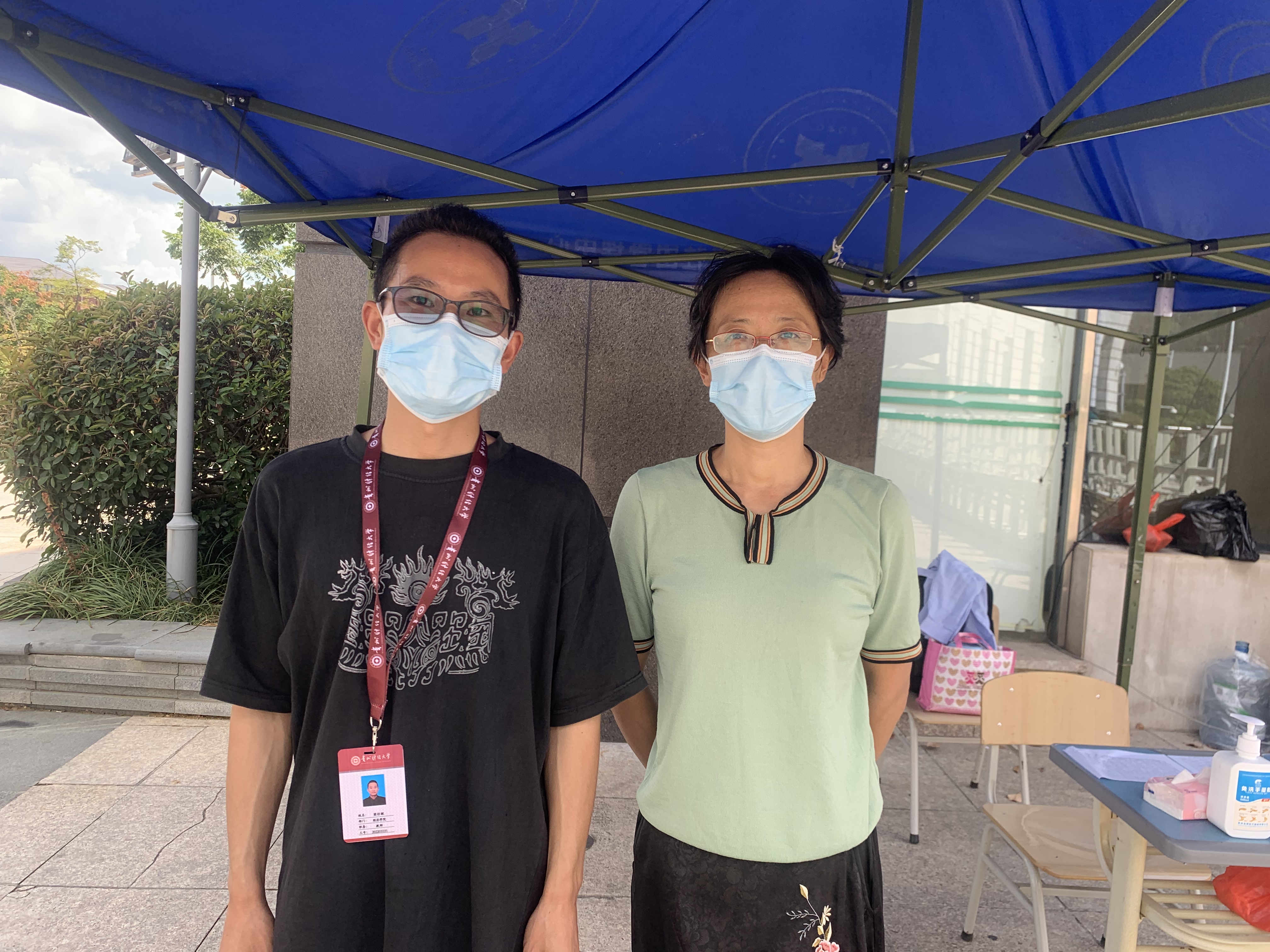 已经57岁的汪延明同志在学校第一次志愿者召集时义无反顾地参与到抗原检测后勤第一线,“希望我这个老党员的加入能够给防疫工作添砖加瓦,给大家起个带头作用吧!”汪老师说道。