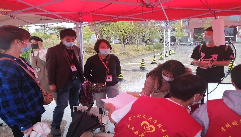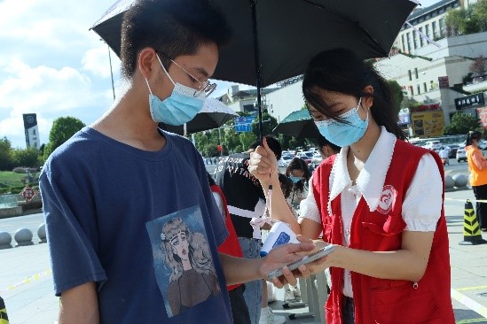 图5 志愿者为同学测量体温