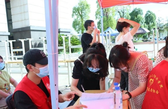 图3 志愿者引导学生进校签到