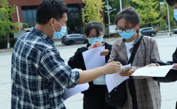 领导叮嘱同学们在喜迎国庆的同时也要做好个人防护,不到中高风险地区活动,遵守防疫规定,积极配合防控工作。副院长李顺毅在给同学们分发外出报告表时,也亲切的叮嘱同学们带好随身重要物品,与同学们进行了国庆疫情防控交流。志愿者们也各司其职,做好同学们进出校的各项报备工作,为同学们愉快的国庆一起努力奋斗。