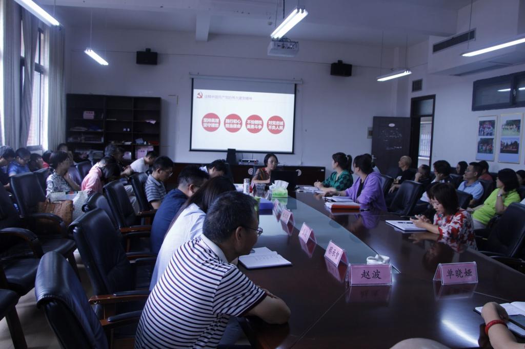 党委书记朱红琼于明德楼413为全体教职工开展“七一”重要讲话精神的集中宣讲。