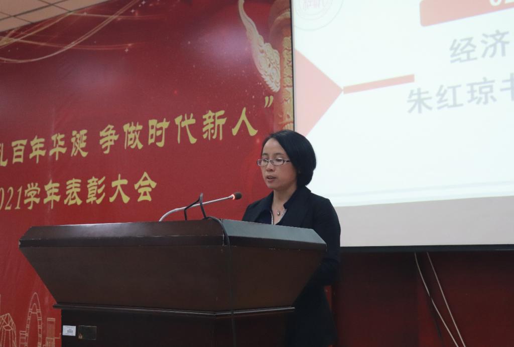 首先,大会进行第一项,全体起立,奏唱中华人民共和国国歌。随后朱红琼书记为本次表彰大会致辞,她首先代表学院全体教职工向即将受到表彰的先进青年代表致以最热烈的祝贺,对辛勤工作一年的老师们同学们表达最真诚的感谢,最后,朱书记寄语并号召新青年要把握新时代,走好新征程,为建设社会主义现代化国家努力奋斗、施展才华、建功立业。