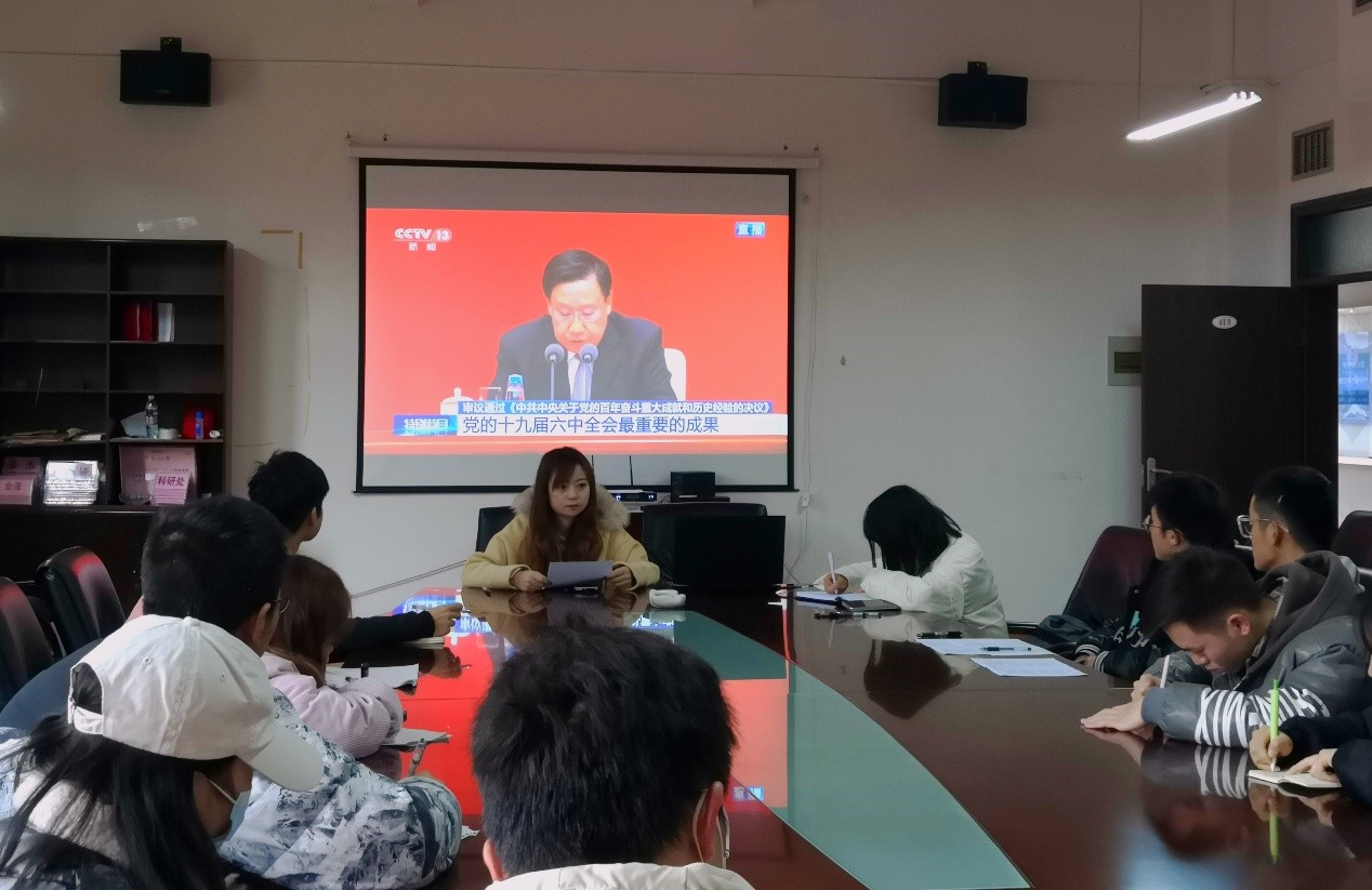 团委组织全体团干、团员、学生骨干集中观看学习党的十九届六中全会精神新闻发布会。