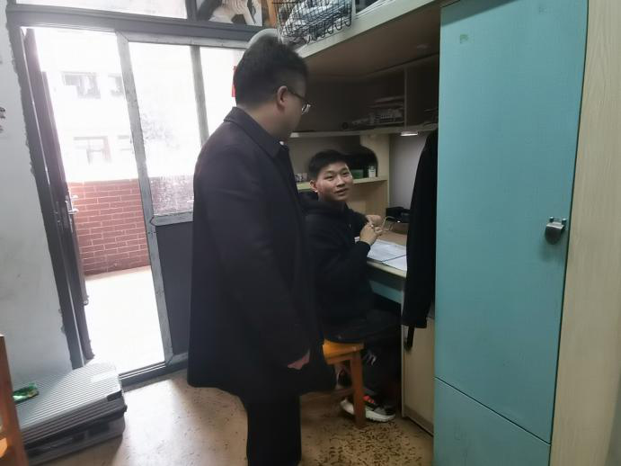 此次共走访了15间寝室,其中绝大多数寝室卫生状况优秀,寝室物品摆放有序,地面整洁干净,学习氛围良好,赵之友副书记对此表示肯定,同时耐心叮嘱同学们要随时开窗透气,注意用电安全、财产安全,有寝室设施问题可以向宿管反映。对于存在问题的寝室,希望同学们将细节做好,卫生水平将会更上一层楼,同寝室友能够团结友爱、共同进步。