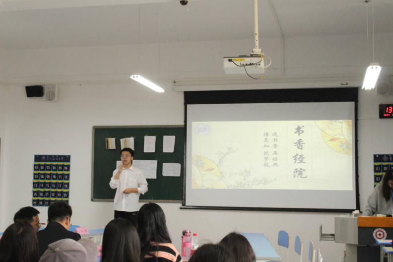 第一项活动:“经典有约”读书分享会。四位选手依次上台分享自己的读书感悟,丰富的内容和激情四溢的演讲,让同学们感受到了好书的崇高魅力。