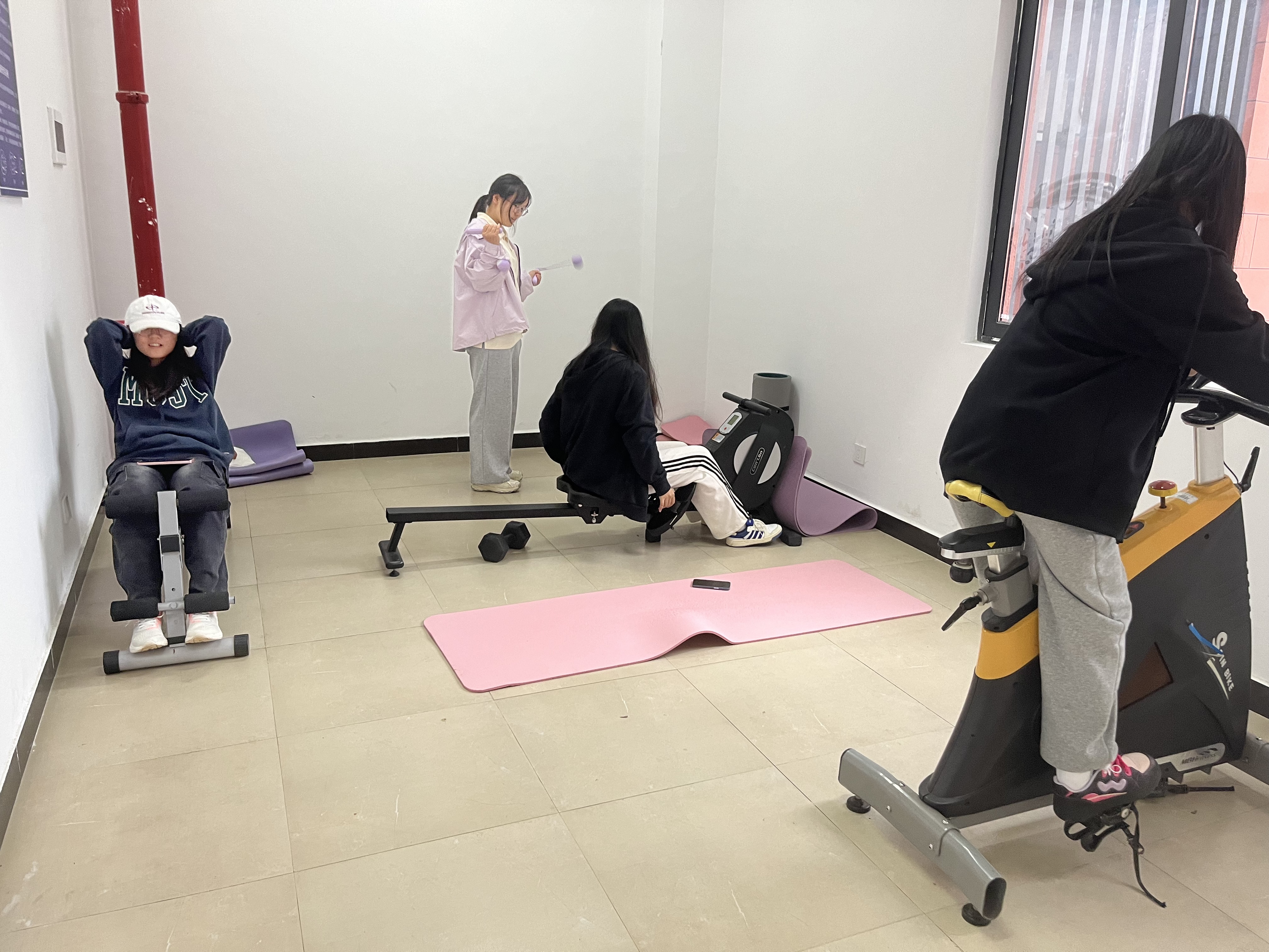 “健身之家”由学校统一配置,每层宿舍楼都有一间,内部配备了动感单车、哑铃和力量训练器材等各类健身设备,学院在此基础上,积极宣传、引导同学们开展多样化的锻炼。开放使用后,成为同学们课余生活的热门去处,学生积极参与体育锻炼,增强体魄,提高身体素质,有效促进校园文化的繁荣发展,体现了学校对学生身心健康的关注和重视,对于培养全面发展的高素质人才具有重要意义。