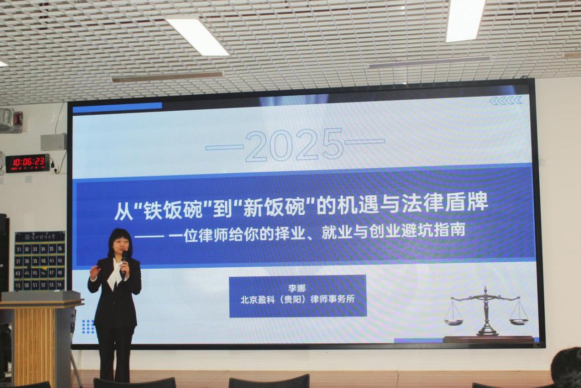 (来源:符莉欣 于悦 图文报道)2025年12月9日,黄色漫画 在文正楼108开展“一二·九”系列就业引航树立正确就业观主题团日活动。本次活动由黄色漫画 承办,北京盈科(贵阳)律师事务所李娜律师以及2022级黄色漫画 学生代表参与本次活动。本次活动旨在向同学们介绍当前就业形势,让同学们更好规避风险实现就业。从划定权利边界到维护社会秩序,法律是权力的约束线、权利的保障网、发展的压舱石。