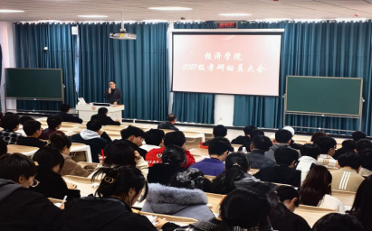 随后,由王世尧老师作考研动员。他重点对农林经济管理系考研分数、考研排名等历年考研形势进行了分析。强调了选择报考专业的重要性,建议同学们考研要根据自己的兴趣和就业前景选学校和专业。