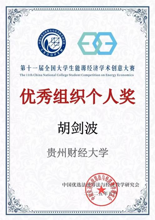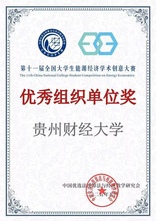 代表我校作为贵州赛区赛事的承办单位,为大赛的顺利进行提供了有力的支持和保障。凭借出色的组织能力和周到的服务,荣获了由赛事组委会颁发的“优秀组织单位奖”,副院长胡剑波教授获“优秀组织个人奖”。