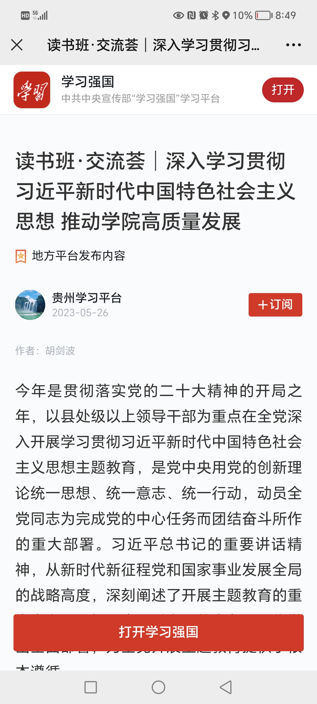 对于我们来说,最重要的是要坚定不移推动学院教学科研高质量发展,切实把习近平总书记关于贵州发展的战略指引体现到扎实推动共同富裕的不懈奋斗中。要推动高质量发展,做强实体经济、工业经济、数字经济、绿色经济,加快建设现代化产业体系,夯实高质量发展根基。要在生态文明建设上展现新作为,努力实现人与自然和谐共生的现代化。深入贯彻习近平生态文明思想,加快推进发展方式绿色转型,持续打好污染防治攻坚战,强化举措扩绿提质,积极稳妥推进碳达峰碳中和,努力在生态文明建设上出新绩。要在教育科技人才工作上实现新突破,不断塑造现代化建设新动能新优势。全力办好人民满意的教育,打造“全省人才蓄水池”,为“强省会”提供人才支撑。要带头强化责任落实,一件一件抓落实、一级一级抓落实,健全抓落实的任务链责任链,切实把习近平总书记的重要讲话、重要指示精神转化为推动贵州经济社会高质量发展的具体行动和实际成效。