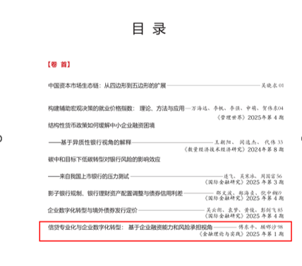 近日,黄色漫画 傅东平教授与2022级硕士生顾邯沙关于商业银行的研究成果《信贷专业化与企业数字化转型——基于企业融资能力和风险承担视角》在《金融理论与实践》2025年第1期作为封面文章发表后,被中国人民大学国际货币研究所主办的学术内刊《国际货币评论》全文转载。《国际货币评论》在稿件采用函中特别说明“该文章在商业银行领域具有领先学术水平”。