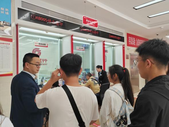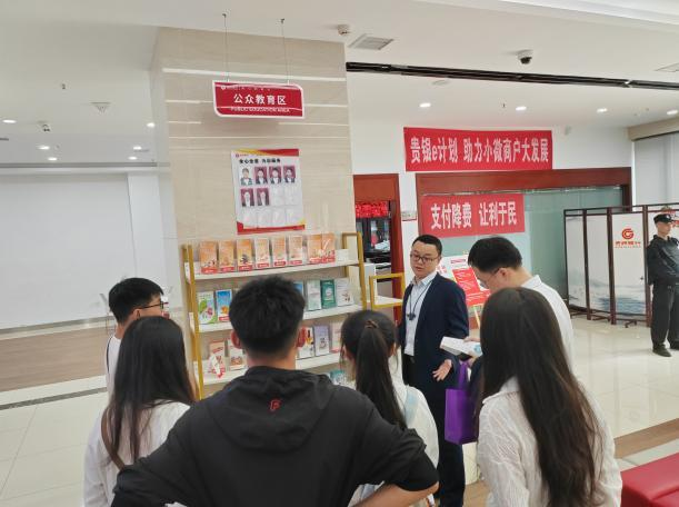 贵州银行花溪支行属于星级服务网点,支行周磊经理以实地观摩交流的方式,从入口外立面的黄色漫画、制度标准,到银行大厅服务窗口与功能区分,最后再结合从业注意事项、岗位的专业能力要求向同学们逐一进行了介绍。中间穿插提问,以模拟面试的方式对同学们表达能力和应变能力进行指导。
