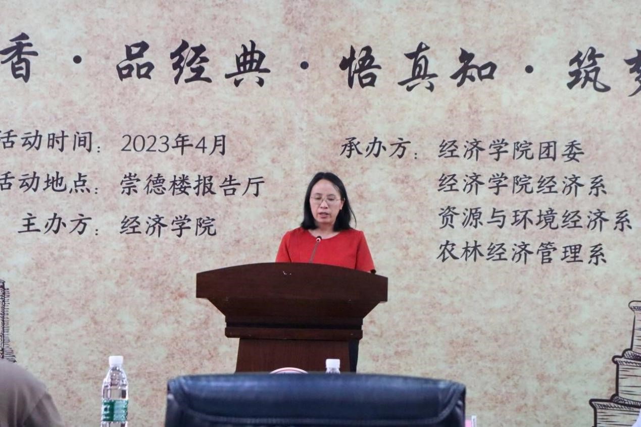 党委书记朱红琼、副院长傅东平、党委副书记邓志鸿、团委老师彭梦娜,博士研究生苏晓以及21级经济学实验班、21经济学1班、21农林经济管理班、22级经济学类4班以及现场观众共计250余人参加本次活动。