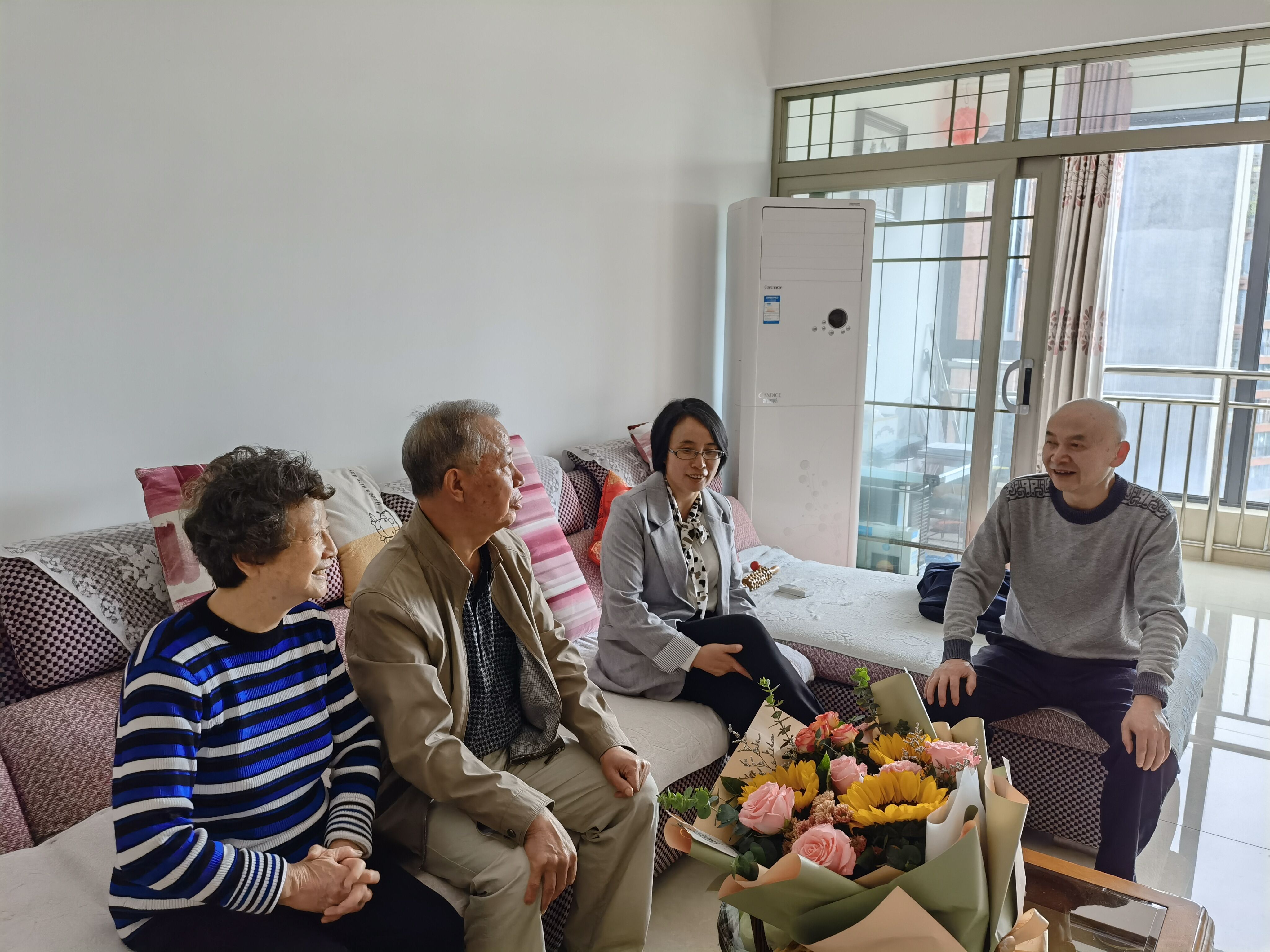 在两位老教师家中大家亲切座谈,朱红琼书记首先代表学院对两位老师为教育事业做出的贡献表示肯定与感谢,关切询问两位老师的退休生活及身体状况并表达真挚的问候和祝福。最后朱红琼书记诚挚邀请他们经常回学校看看,为学院的发展多提宝贵建议,特别是在关心下一代工作方面,还需老教师们发挥独特优势和作用,继续开展好爱党爱国爱社会主义教育,切实增强青少年感党恩、听党话、跟党走的思想自觉和行动自觉,进一步弘扬和传承好我们党的光辉历程和优良传统。