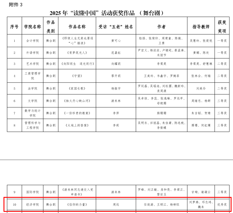 关工委广泛发动师生积极参与。最后,征文作品获三等奖3个、优秀奖2个,微视频作品获三等奖1个优秀奖1个,舞台剧作品获优秀奖1个。