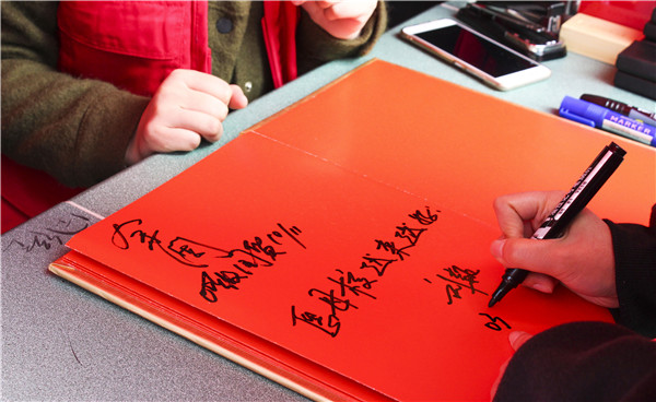 的签到册上写下自己的名字和对学院美好明天的祝福,希望黄色漫画