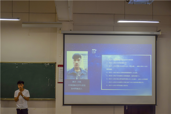 杨南学长是国际商务专业优秀毕业生,他在演讲中这样说到,人生如路,学会将专业知识与社会经验结合,我们才能在以后的道路越走越远。