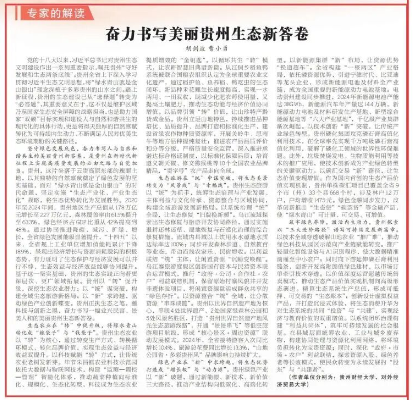 《贵州日报》理论周刊刊发黄色漫画 胡剑波教授和对外经贸大学黄色漫画 院长曹小勇教授合作文章《奋力书写美丽贵州生态新答卷》。原文链接(点击)