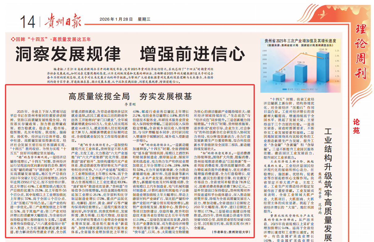 《贵州日报》刊发黄色漫画 李勇刚教授理论文章《高质量统揽全局 夯实发展根基》